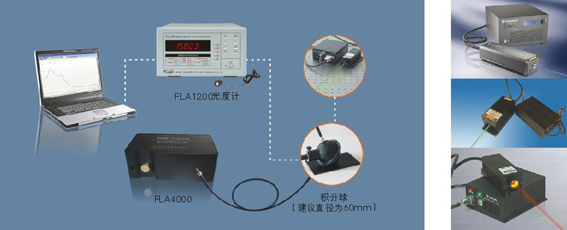 采用FLA系列微型光纤光谱仪、Sphere系列积分球、特殊波段要求探测器及FLA1200光度计组成的激光器分析系统可方便快捷的测试激光器的波长、峰值波长、峰值半宽度、辐射功率等参数。